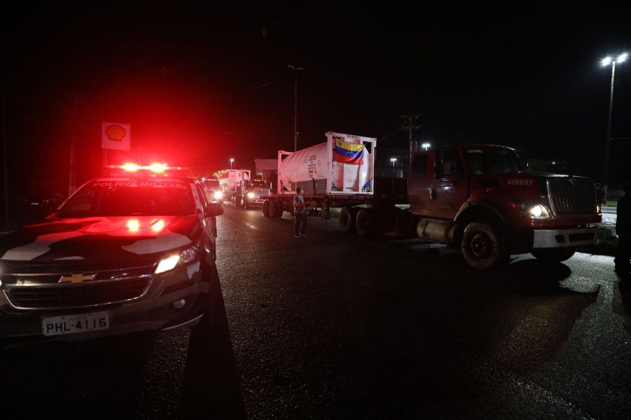 Por volta das 21h30, cinco carretas, cada uma transportando cerca de 25 mil metros cúbicos, atravessaram a barreira da Polícia Federal, adentrando a capital amazonense. No local, o secretário de Saúde do Amazonas, Marcellus Campêlo, agradeceu aos representantes da Venezuela e reafirmou que a carga, somando-se a todos os esforços do Governo do Amazonas, será fundamental.